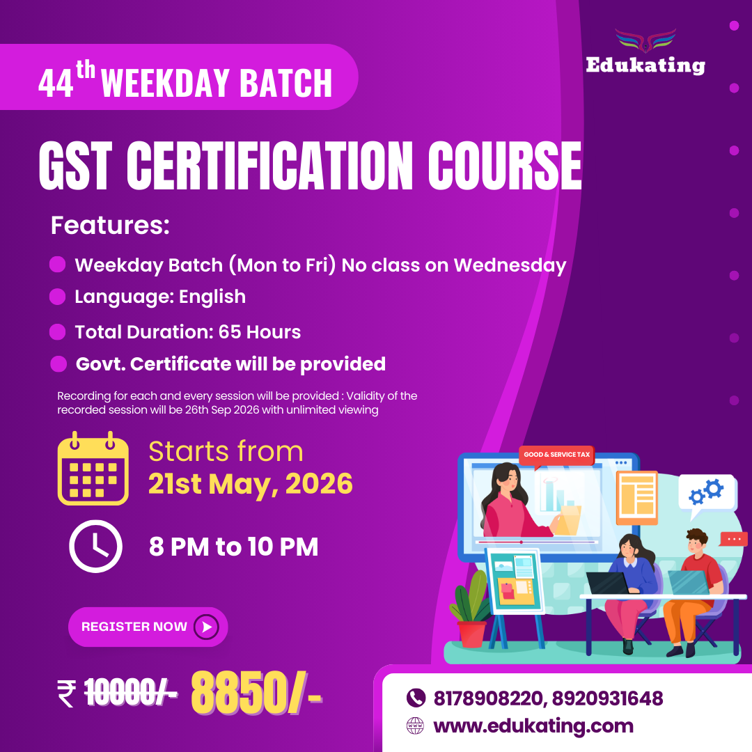 The live interactive sessions will cover GST Act from basic to Advanced Level including the practical exposure on GST Portal for Return Filing , Registration process etc.
