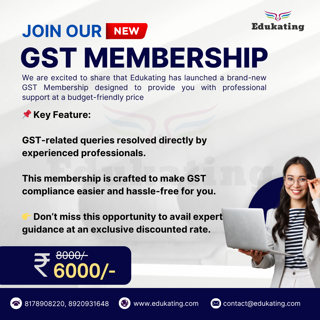 We are thrilled to introduce Edukating’s all-new GST Membership, designed to help professionals, business owners, and learners stay ahead in the world of GST with expert assistance and continuous support.