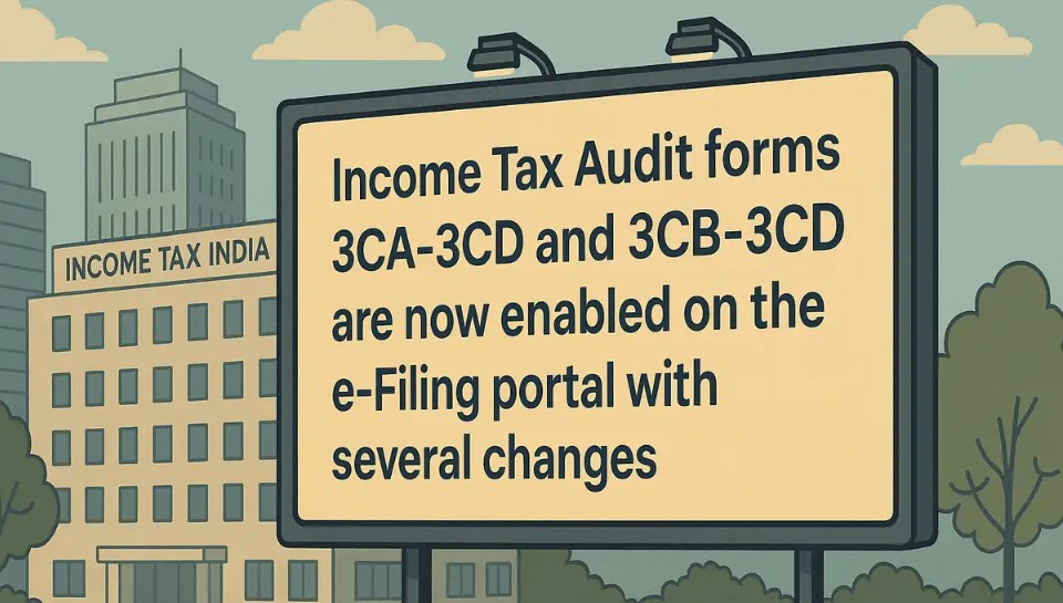 On July 18, 2025 the Income Tax Department said that Income Tax Audit using Forms 3CA-3CD and 3CB-3CD are now enabled on the e-Filing ITR portal with many changes. Moreover, the tax department has also released the common offline utility functionality of income tax audit forms Form 3CA, Form 3CB and Form 3CD.